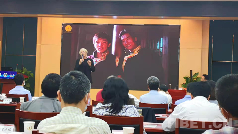 圖為美國作家、香巴拉工作室創(chuàng)始人龍安志在紀(jì)念西藏和平解放70周年學(xué)術(shù)研討會(huì)上進(jìn)行題為《西藏文化可持續(xù)發(fā)展》的發(fā)言 攝影:劉莉