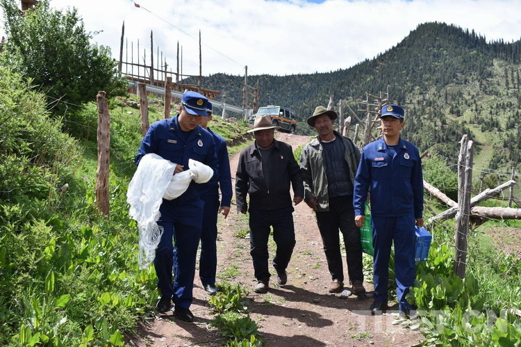 圖為中隊(duì)指戰(zhàn)員前往俄洛鎮(zhèn)孔瑪村慰問(wèn)