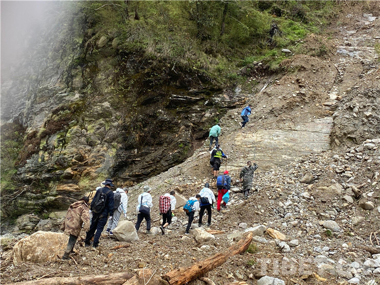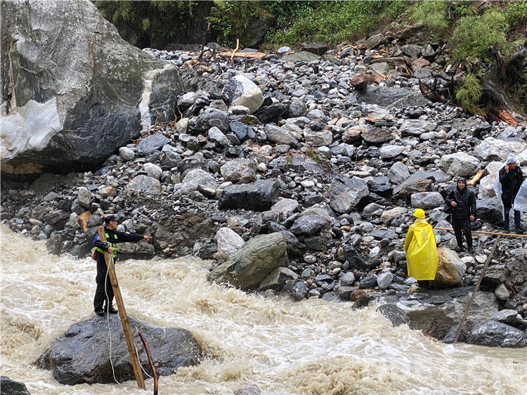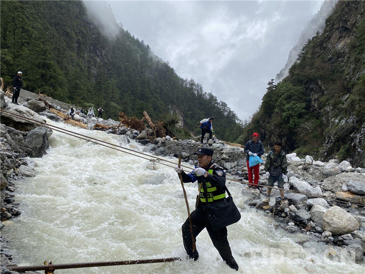 在經(jīng)過勘察后,派出所民警發(fā)現(xiàn)左布德至國防公路四號橋位置發(fā)生大面積山體滑坡10余處,救援隊研判搜救風險后,通過搭橋、吊繩、分批護送等方式打通了長達10公里的“生命通道”。