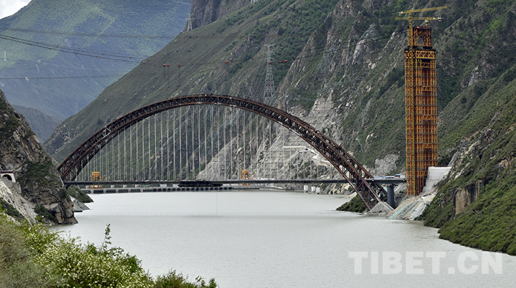 藏木雅魯藏布江特大橋創(chuàng)造了世界同類型鐵路橋梁海拔最高(海拔3350米)、鋼管拱跨度最大(主跨430米)、主拱鋼管直徑最大(鋼管直徑1.8米)、鋼管拱單根管內(nèi)混凝土頂升方量最多(單根管內(nèi)混凝土頂升方量1022方)的四個“世界第一”。