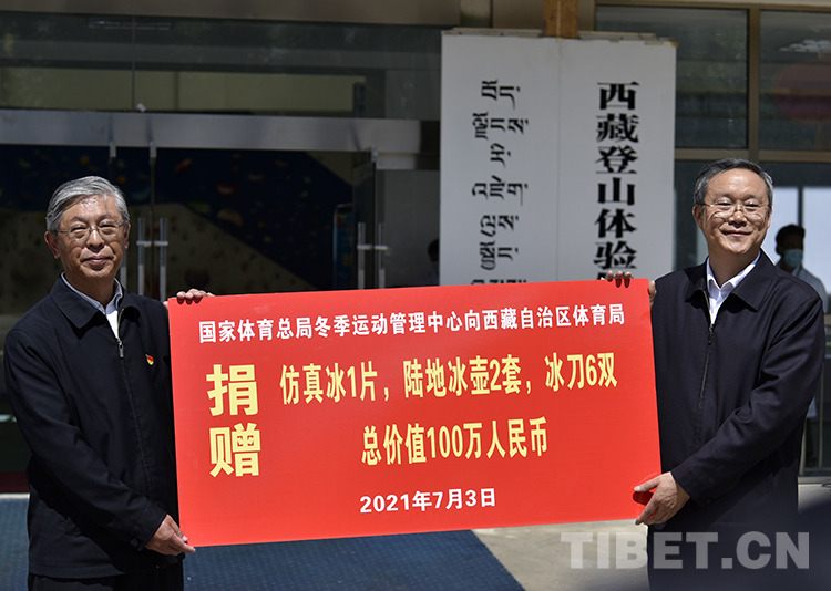 中國西藏網(wǎng)訊 7月3日,國家體育總局冬季運(yùn)動管理中心向西藏自治區(qū)體育局捐贈物資儀式在拉薩市舉行。西藏自治區(qū)體育局獲贈仿真冰、陸地冰壺、冰刀等總價值100萬元的設(shè)施設(shè)備,助力冬季運(yùn)動項(xiàng)目發(fā)展。