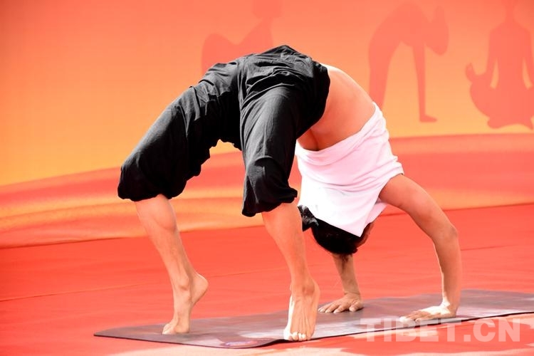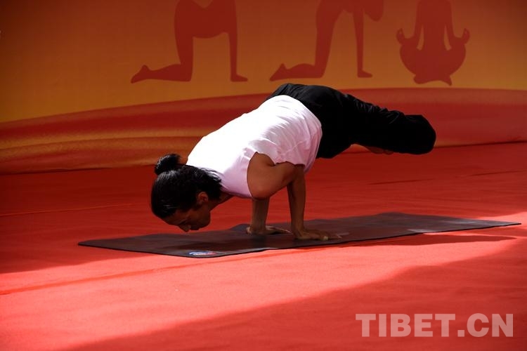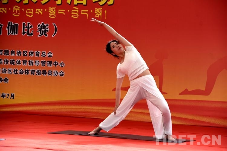 比賽中,來自西藏各地的40位瑜伽愛好者以柔韌的身姿表現(xiàn)出運(yùn)動(dòng)之美,以自信、歡愉的精神面貌展現(xiàn)新時(shí)代的西藏幸福生活。(中國西藏網(wǎng) 記者/次旦拉姆)
