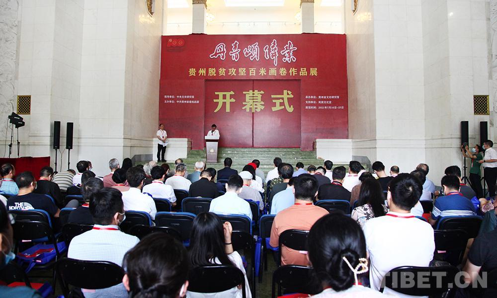 中國(guó)西藏網(wǎng)訊 7月16日,由中央文史研究館指導(dǎo)、貴州省委統(tǒng)戰(zhàn)部主辦,貴州省文史研究館承辦的《丹青頌偉業(yè)——貴州“脫貧攻堅(jiān)”百米畫卷》主題展覽在北京民族文化宮隆重開幕。