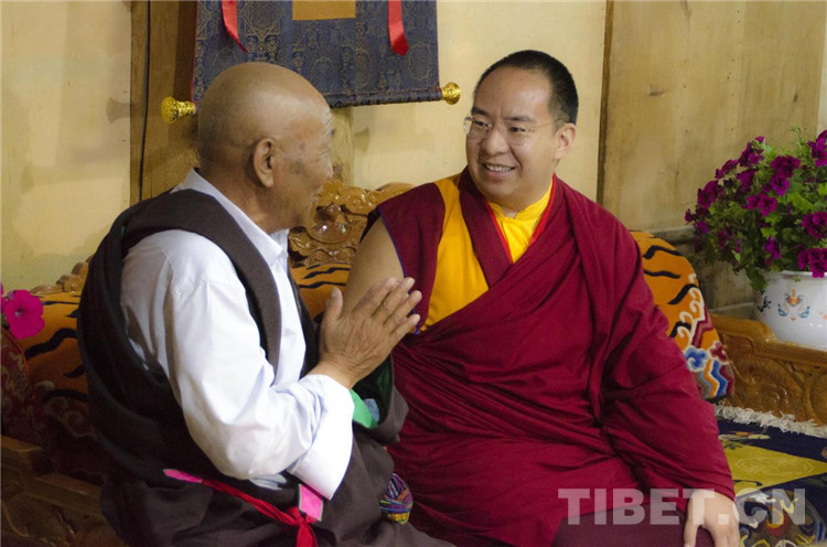 圖為班禪在溝爾普村入戶走訪時,與村民親切交談 攝影:歐帆