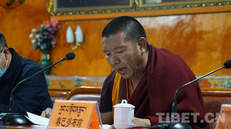 扎寺管委會副主任賽巴·多布瓊、扎寺管委會委員嘎欽尼瑪平措在大會上交流了學(xué)習(xí)體會。他表示,習(xí)近平總書記到西藏慶祝西藏和平解放,這在黨和國家歷史上是第一次,這表明黨中央對西藏工作的支持,對西藏干部群眾的關(guān)懷,總書記到哲蚌寺視察并發(fā)表重要講話,是對西藏宗教工作的充分肯定,更是對我們廣大宗教界的極大鼓勵和鞭策。我們一定要牢記習(xí)近平總書記諄諄教誨,繼承和發(fā)揚(yáng)扎什倫布寺愛黨、愛國、愛教的優(yōu)良傳統(tǒng),以史為鑒帶頭引導(dǎo)廣大僧眾永遠(yuǎn)感黨恩、聽黨話、跟黨走,堅決劃清與十四世達(dá)賴和達(dá)賴集團(tuán)的界限,堅定不移維護(hù)祖國統(tǒng)一和民族團(tuán)結(jié),用自己的實(shí)際行動自覺踐行“四條標(biāo)準(zhǔn)”。