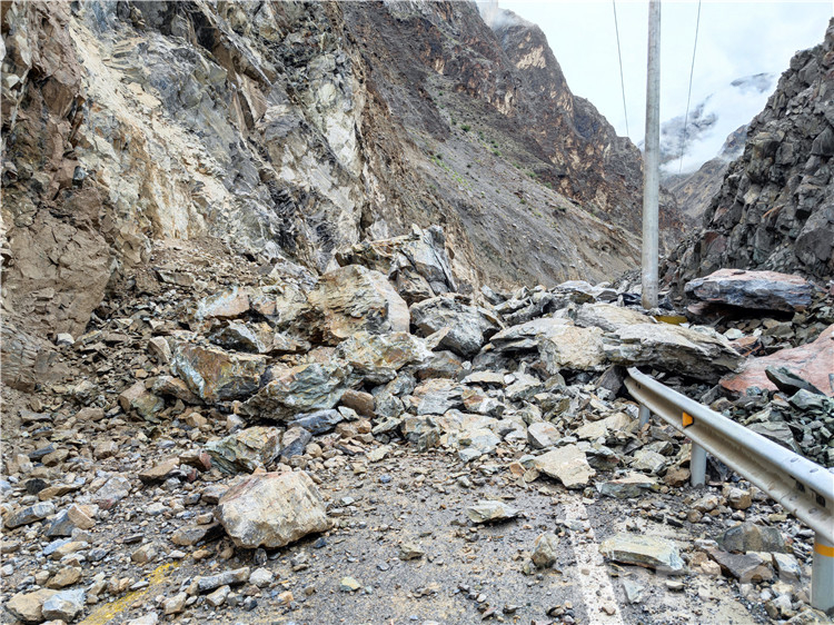抵達現(xiàn)場后,武警官兵及時對災害路段實施交通管制,并把滯留車輛疏導至安全區(qū)域,隨即對泥石流堆積物和塌方體進行清理。因災害點處于峽谷地帶,地勢十分險要,作業(yè)面狹窄,且降雨及落石持續(xù)不斷,為確保搶通工作高效安全,指揮員科學指揮,安全員高度警惕,操作手快速搶通,各要素密切配合,給道路搶通工作爭取了寶貴時間。