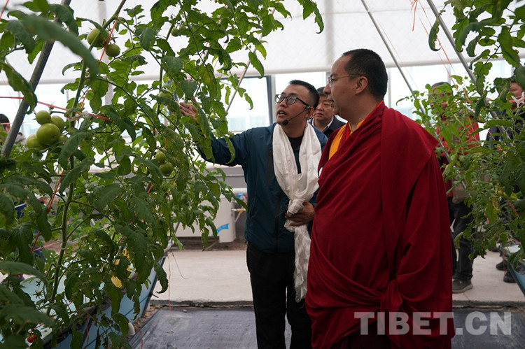 班禪走入蔬菜園、花卉園、熱帶植物園等溫室園區(qū),不時(shí)俯身仔細(xì)查看農(nóng)作物長(zhǎng)勢(shì)。得知溫室內(nèi)竟種有百香果,班禪高興地說道:“百香果可是熱帶植物,能在那曲海拔這么高的地方種出來,很不容易!”在蔬菜園,班禪打開種植擋板,聽取無土栽培種植技術(shù)介紹,詳細(xì)詢問營(yíng)養(yǎng)液噴灑時(shí)間、頻率等情況,點(diǎn)頭表示肯定。