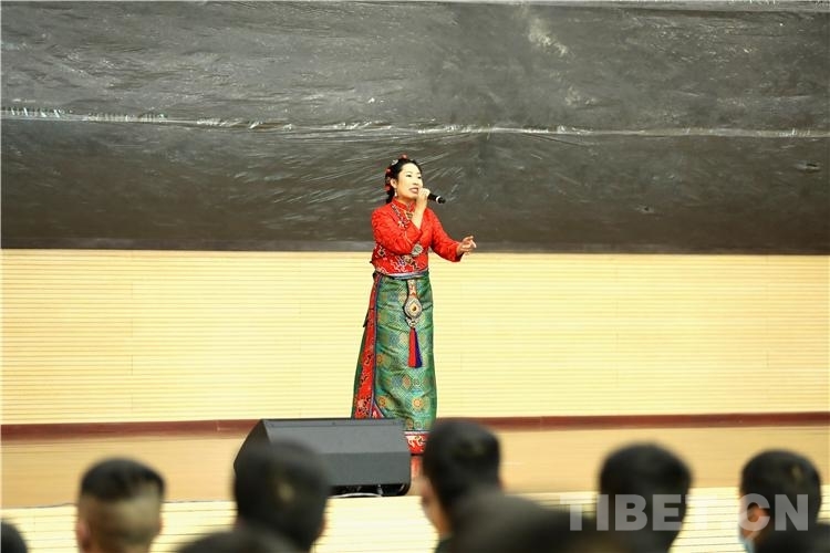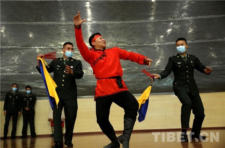 當日下午,該團活動室人頭攢動、座無虛席。演出在開場舞《雪域行動》中拉開了帷幕。演員們燦爛的笑臉,為基層官兵帶去了快樂、鼓舞和問候。女聲獨唱《第二故鄉(xiāng)》《在那東山頂上》、男聲獨唱《雪域點兵》《我祝祖國三杯酒》等節(jié)目深切表達了廣大官兵對祖國的無限忠誠,對西藏人民的無比熱愛之情。小品《照相》、舞蹈《民族芬芳》等節(jié)目則充分展示了官兵們對軍營生活的熱愛,以及危難時刻挺身而出保家衛(wèi)國的軍人氣魄。歌曲《紅旗飄飄》更是引起全場觀眾的大聲合唱,唱出了大家的愛國情懷,令人熱血沸騰。演出間隙穿插的互動環(huán)節(jié)幽默輕松、趣味十足,將活動氣氛推向一個又一個高潮。