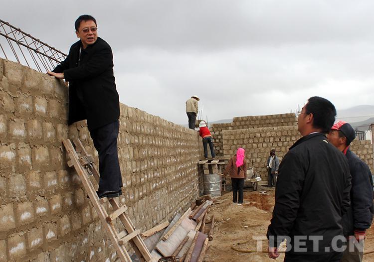 圖為中國石化第五批援藏干部、班戈縣常務(wù)副縣長潘峰(左)和副書記陳志清(右)在班戈縣鄉(xiāng)下檢查牧民定居房的施工情況(唐召明2011年6月25日攝)