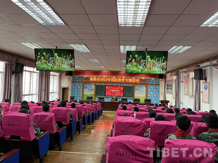 當(dāng)日下午,邀請(qǐng)那曲軍分區(qū)干部走進(jìn)校園為那曲市二中學(xué)生開展一次國(guó)防教育專題講座。專題講座開始前,首先由七年級(jí)格桑次仁和巴桑旺姆同學(xué)為大家深情朗誦《請(qǐng)黨放心 強(qiáng)軍有我》,一首詩詞朗誦把大家緩緩帶入課堂。由那曲軍分區(qū)唐鵬同志運(yùn)用豐富的知識(shí)和大量史實(shí),圍繞國(guó)防教育的重要意義等內(nèi)容為大家作了一場(chǎng)精彩的講座,利用媒體視頻、圖片資料給師生們講解了我國(guó)國(guó)防現(xiàn)狀、國(guó)防建設(shè)的重要作用,讓學(xué)生掌握基本軍事知識(shí)技能,加深對(duì)軍隊(duì)的認(rèn)識(shí)和理解,整個(gè)講座旁征博引,數(shù)據(jù)翔實(shí),觀點(diǎn)敏銳,既有清晰的歷史脈絡(luò),又有具體事件的介紹,在同學(xué)中引起了強(qiáng)烈共鳴。