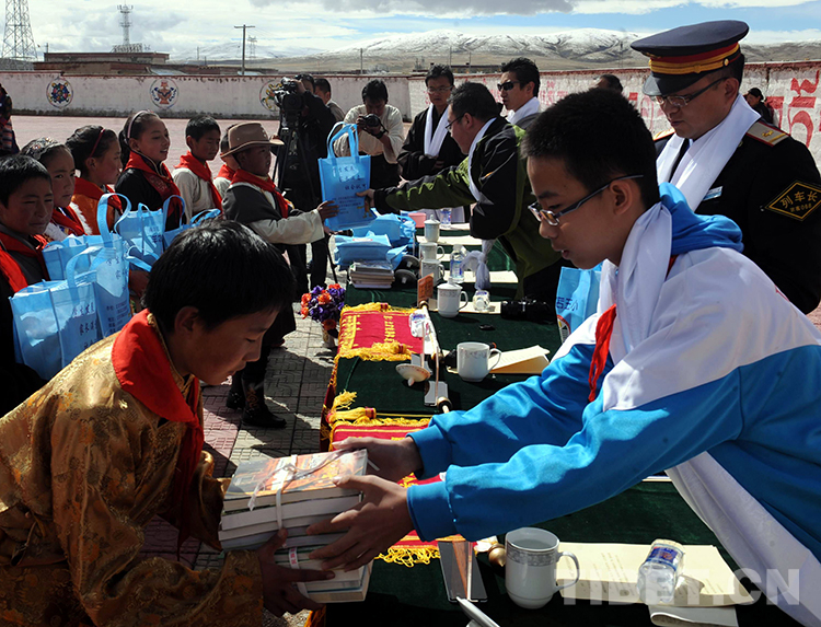 為了幫助西藏貧困地區(qū)的藏族孩子學(xué)到更多的科學(xué)文化知識,豐富他們的業(yè)余文化生活,新華社北京分社在捐贈中號召黨團(tuán)員積極參與,共捐藏漢文書籍1000多冊,并委托我將這些書送到西藏孩子手中。