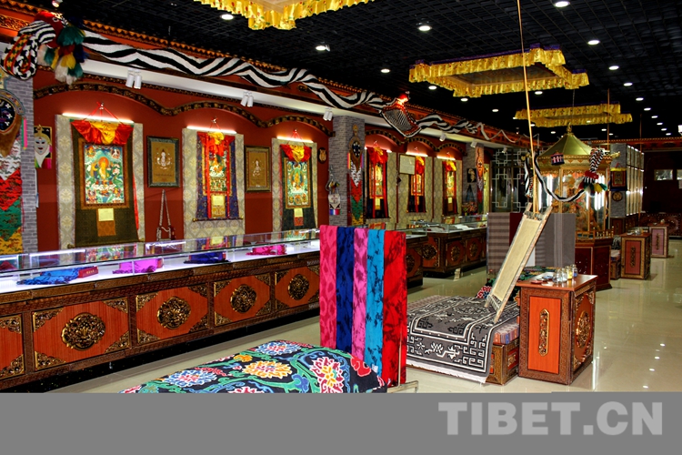 圖為乃東區(qū)民族嘩嘰手工編織專業(yè)合作社產(chǎn)品銷售區(qū)