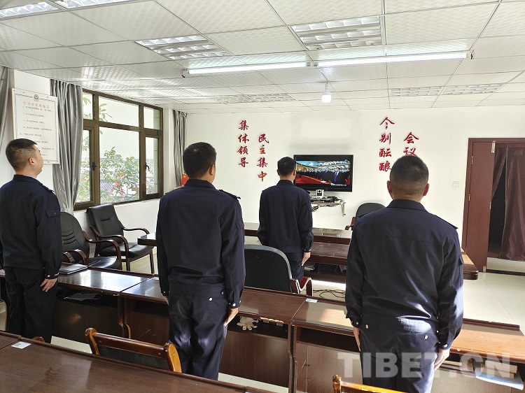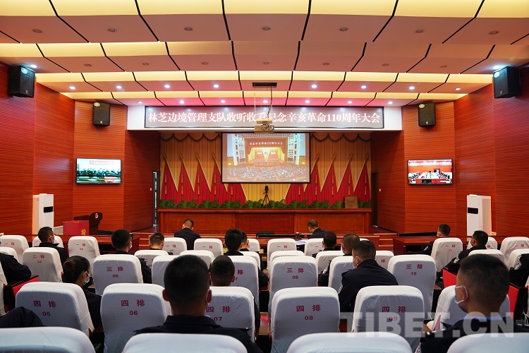 圖為林芝邊境管理支隊朗縣邊境管理大隊民警觀看紀(jì)念辛亥革命110周年大會直播 攝影:楊子
