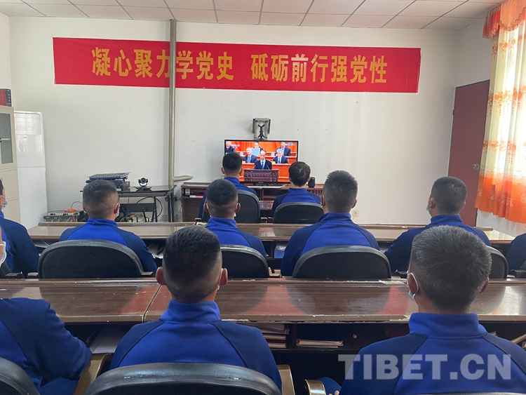 圖為那曲市森林消防大隊山南駐防分隊組織觀看紀(jì)念辛亥革命110周年大會直播