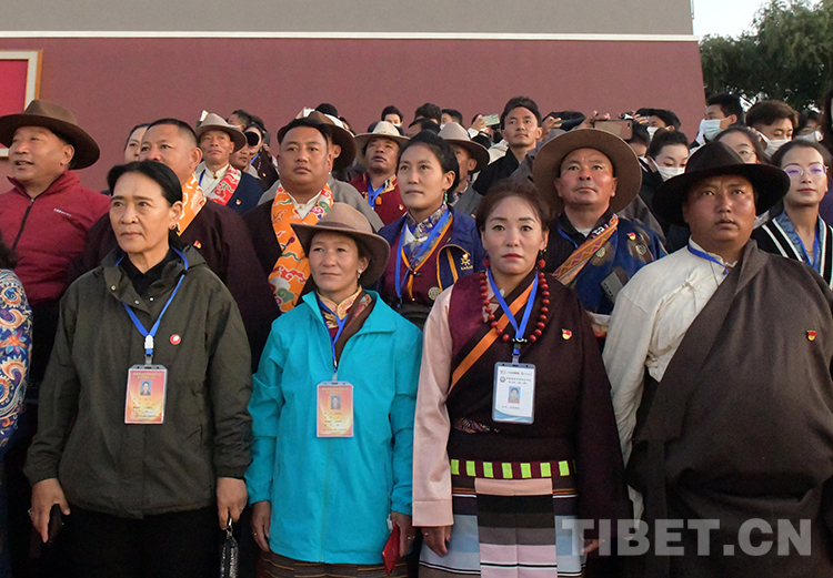 當(dāng)日凌晨,懷著萬分激動(dòng)的心情,來自西藏自治區(qū)山南市貢嘎縣森布日極高海拔生態(tài)搬遷安置點(diǎn)的基層干部身著民族盛裝,來到北京天安門廣場(chǎng),站在東觀禮臺(tái)上靜靜地等候著五星紅旗冉冉升起。