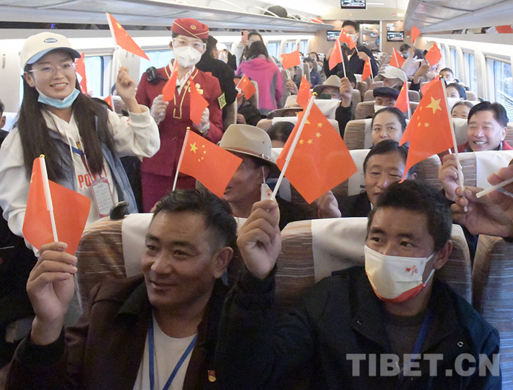 這是森布日那曲極高海拔生態(tài)搬遷安置點(diǎn)的赴京基層干部乘坐京張高鐵列車,感受祖國的偉大變化(唐召明2021年10月20日攝)