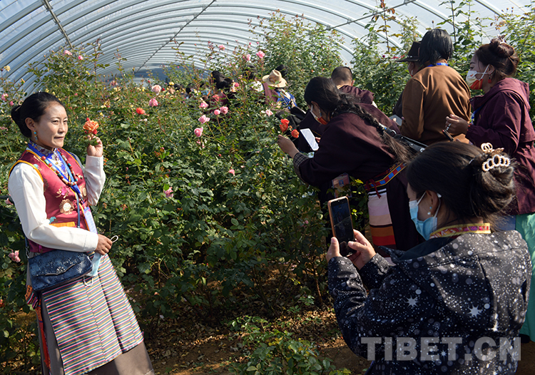 這是森布日那曲極高海拔生態(tài)搬遷安置點(diǎn)的赴京基層干部在北京密云區(qū)參觀現(xiàn)代農(nóng)業(yè)時(shí),拍照留念(唐召明2021年10月21日攝)