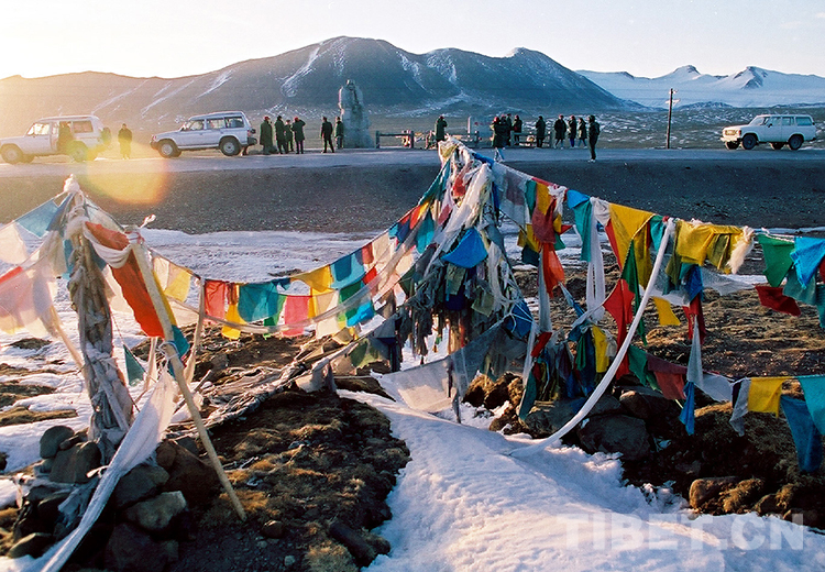 這是青藏公路所經(jīng)過的海拔為5231米的唐古拉山口,現(xiàn)已成為游人的觀光之地(唐召明1996年攝)