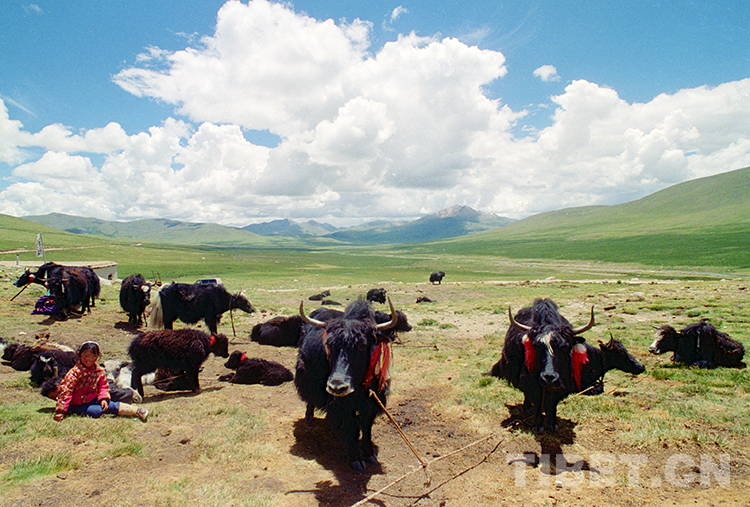 這是藏北草原一戶牧民人家所放牧的牦牛群(唐召明1997年攝)