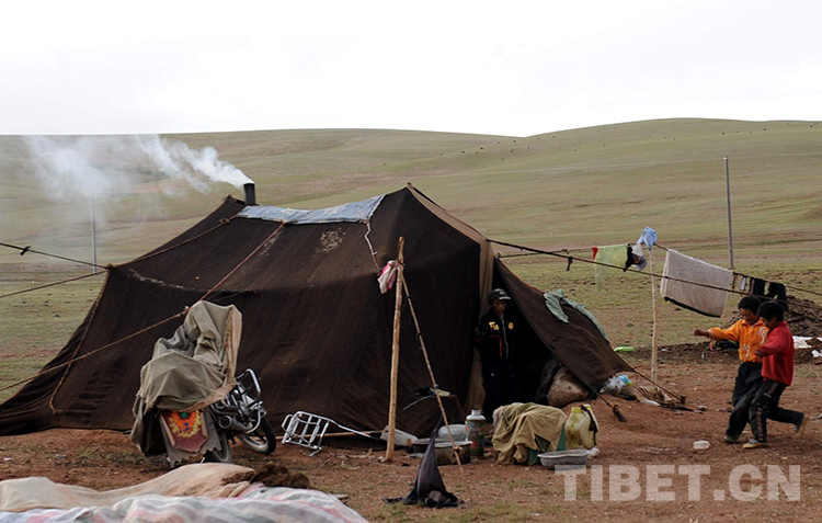 這是那曲地區(qū)雙湖特別區(qū)(現(xiàn)那曲市雙湖縣)嘎措鄉(xiāng)兒童在夏季草場的牦牛帳篷前玩耍(唐召明2009年攝)