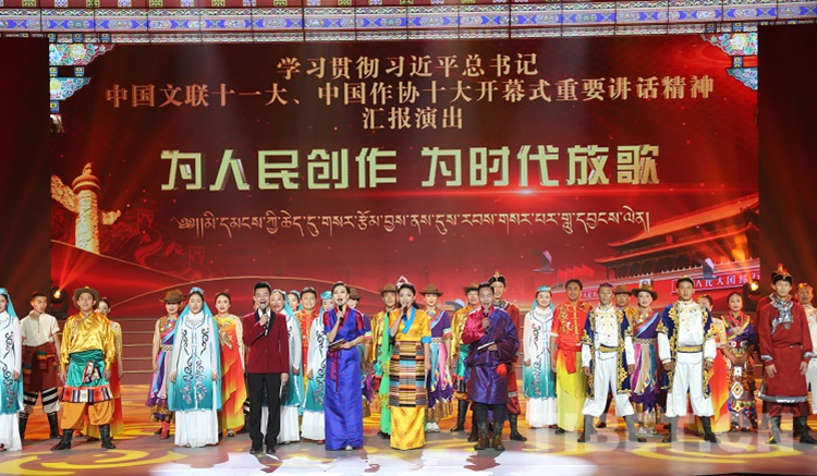 12月19日,“為人民創(chuàng)作 為時代放歌——西藏拉薩學(xué)習(xí)貫徹習(xí)近平總書記在中國文聯(lián)十一大、中國作協(xié)十大開幕式上的重要講話精神匯報演出”在西藏自治區(qū)拉薩市盛大開演。拉薩市文藝界代表和各族各界干部群眾歡聚一堂、載歌載舞,唱出新時代的旋律、舞動新時代的風(fēng)采,把新時代的贊歌傳遍古城拉薩、獻(xiàn)給各族群眾。