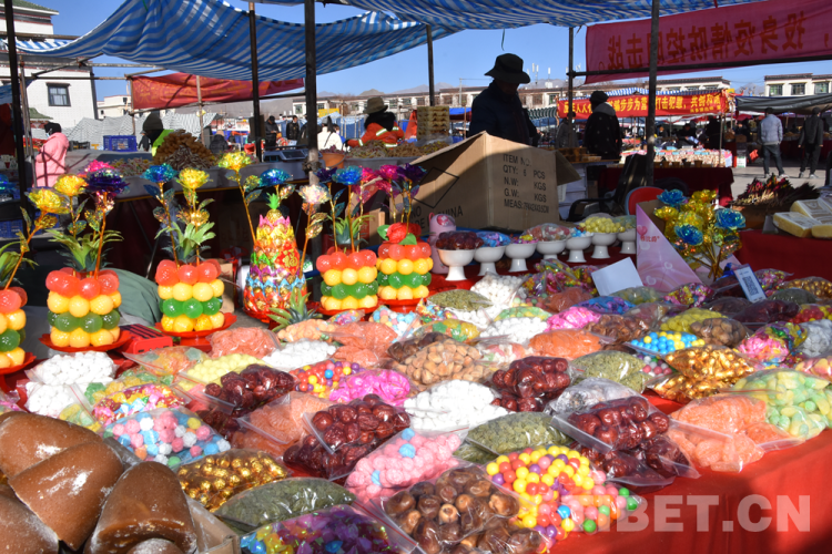 中國西藏網(wǎng)訊 近日,在西藏自治區(qū)日喀則市區(qū)最大的年貨集市,價(jià)格實(shí)惠、種類豐富的商品吸引了眾多市民前來置辦年貨。過年用的土特產(chǎn)青裸穗、奶制品、民族手工藝品扎木念琴、精美的糌粑盒、調(diào)料盒等賣得紅火。