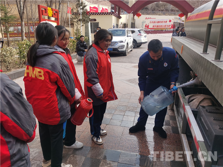 中國西藏網(wǎng)訊 近日,正值“開學季”,師生陸續(xù)返校。因管網(wǎng)凍裂造成昌都市第二初級中學供水中斷,3000余名師生用水困難,學校無法為正常教學生活提供保障。接到求助后,卡若區(qū)森林消防中隊請示上級后,立即動用水罐消防車為師生送水,解燃眉之急。當消防救援人員將水送到學校時,學生們已經(jīng)等候多時,排起了長長的隊伍,拿著盛水器皿裝水,隊員逐一為學生們攜帶的臉盆進行放水,確保每名學生都有水用。