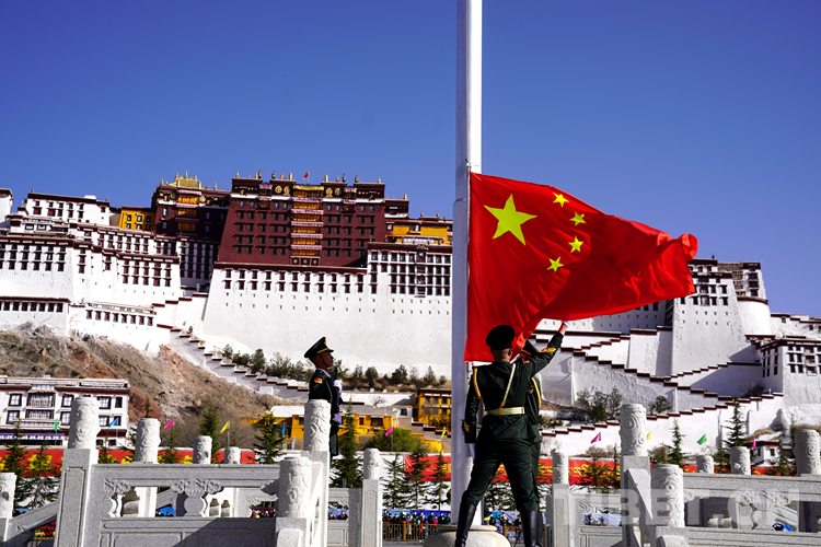 當(dāng)日,西藏全區(qū)各地市、縣(區(qū))、城鎮(zhèn)社區(qū)、各類學(xué)校、宗教場(chǎng)所、機(jī)關(guān)企事業(yè)單位同步開展“升國(guó)旗、唱國(guó)歌”活動(dòng),共同慶祝這個(gè)不尋常的日子。(中國(guó)西藏網(wǎng) 記者/王淑 拉姆)