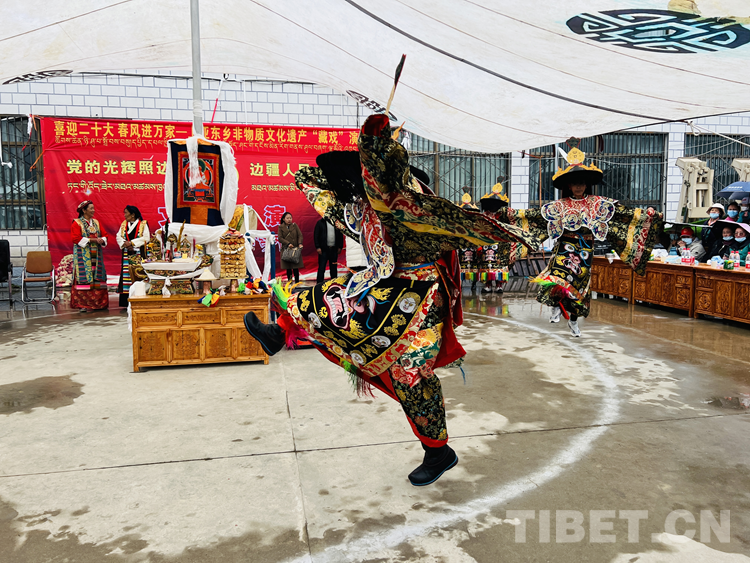 為繼承和弘揚優(yōu)秀傳統(tǒng)文化,使古老的藏戲再次煥發(fā)生機,近日,西藏自治區(qū)日喀則市亞東縣藝術(shù)團和亞東縣上亞東鄉(xiāng)嘎林崗藏戲隊共同開展了“喜迎二十大 春風(fēng)進(jìn)萬家”為主題的上亞東鄉(xiāng)非物質(zhì)文化遺產(chǎn)藏戲演出活動?;顒又荚谧尣貞蜇S富百姓精神文化生活的同時,激發(fā)廣大青少年傳承、弘揚藏戲藝術(shù)的文化自信與文化自覺,推動藏戲的傳承、保護(hù)和發(fā)展。