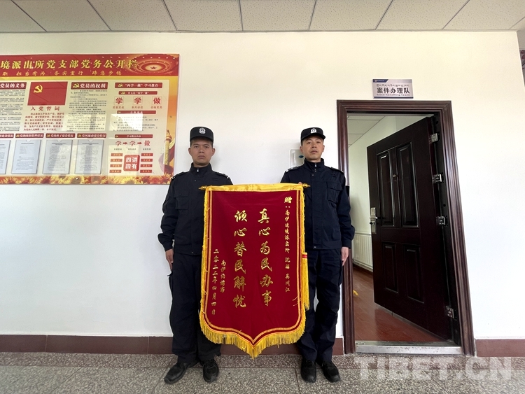 中國西藏網(wǎng)訊 “真心為民辦事,傾心替民解憂!”近日,西藏自治區(qū)林芝邊境管理支隊(duì)南伊邊境派出所收到一面來自廣東的錦旗,向派出所移民管理警察沈朋、吳川江的幫助表示感謝。