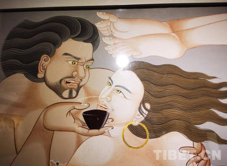 畫展特別展出了邊巴旺堆人物風情“四季”,以傳統(tǒng)的欽孜派唐卡藝術(shù)繪畫表達了春夏秋冬自然民俗風情,并以刻畫人物為個性特征,表達人一生經(jīng)歷的生老病死。視覺的沖擊力讓繪畫作品更具藝術(shù)感染力,表現(xiàn)了高原人對大自然和生命的祟敬?!版?zhèn)魔圖”作品以西藏“鎮(zhèn)魔圖”傳說為繪畫基礎(chǔ)進行了探索性創(chuàng)作,通過四幅作品顯現(xiàn)西藏幾十年來這片高天厚土發(fā)生的翻天覆地的變化,也表達了藏傳佛教健康發(fā)展的愿望,繪畫作品在藝術(shù)手法上,色彩厚重絢麗,濃郁的傳統(tǒng)和現(xiàn)代繪畫完美融合,作品對末來充滿了想象,給每位觀眾帶來不同的藝術(shù)享受。作品“三毒”繪畫藝術(shù)創(chuàng)作,通過藝術(shù)繪畫作品直觀、具體、形象地批判社會發(fā)展中的不雅享樂追求。三組11幅邊巴旺堆階段性的代表作品,不同的傳統(tǒng)繪畫形式展示了欽孜派唐卡藝術(shù)之美。