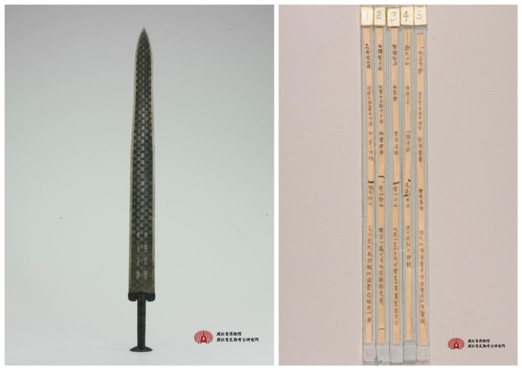 圖為湖北省博物館的兩件鎮(zhèn)館之寶:左為歷經(jīng)2500余年依然寒光閃閃、毫無(wú)銹蝕的“天下第一劍”——越王勾踐劍,右為云夢(mèng)睡虎地秦簡(jiǎn) 圖片來(lái)源:湖北省博物館網(wǎng)站