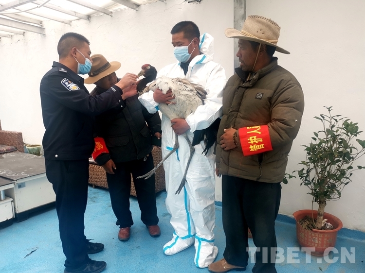 結(jié)合丹頂鶴受傷情況,馬攸橋邊檢站立即聯(lián)系了普蘭縣駐馬攸木疫情防控點(diǎn)醫(yī)務(wù)人員,對(duì)受傷丹頂鶴進(jìn)行初步檢查,并對(duì)傷口進(jìn)行簡(jiǎn)單的處理。同時(shí),馬攸橋邊檢站積極與普蘭縣林業(yè)局取得聯(lián)系,請(qǐng)求派遣專業(yè)人員前往檢查站對(duì)受傷丹頂鶴做進(jìn)一步的救助。目前,受傷丹頂鶴已經(jīng)移交普蘭縣林業(yè)局專業(yè)人員,并將帶回普蘭縣林業(yè)局做進(jìn)一步的救治處理。