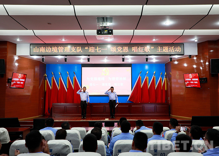 圖為山南邊境管理支隊機(jī)關(guān)組織開展“為黨旗增輝 為理想揚(yáng)帆——迎七一 頌黨恩 唱紅歌”主題歌詠比賽 鄭琦山攝