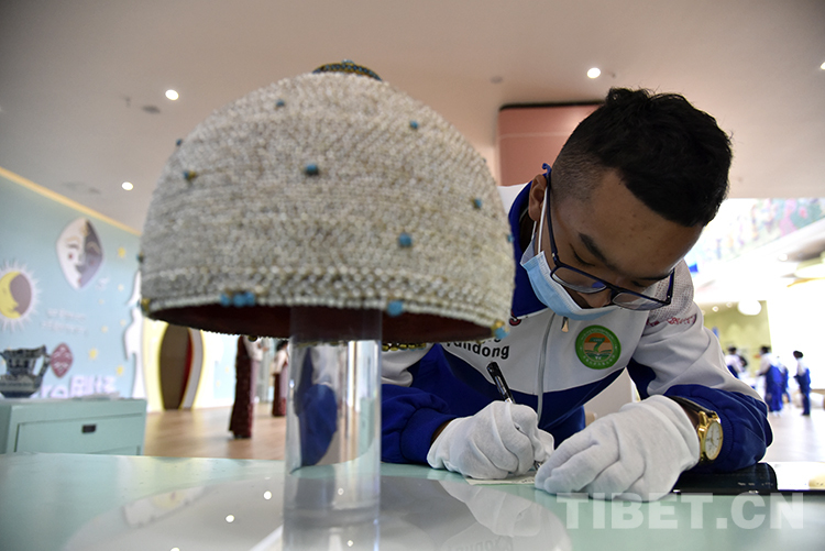 “我從電視上看了‘三星堆’發(fā)掘直播節(jié)目,對(duì)歷史產(chǎn)生了濃厚的興趣。后來,自己也閱讀了西藏歷史相關(guān)書籍,覺得非常吸引人。今天,我們來到了煥然一新的西藏博物館,通過參觀展覽對(duì)歷史也有了更生動(dòng)的感受。”拉薩市第七中學(xué)八年級(jí)四班歷史課代表旦增羅布正在認(rèn)真記錄自己戴上手套觸摸文物仿制品的感受。