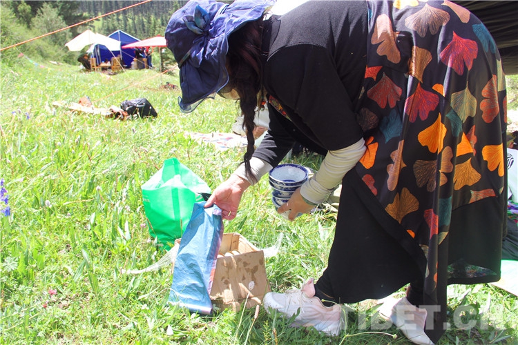圖為2022年伊日鄉(xiāng)第二屆文化旅游藝術(shù)節(jié)上群眾離開(kāi)前將垃圾集中整理 攝影:王茜