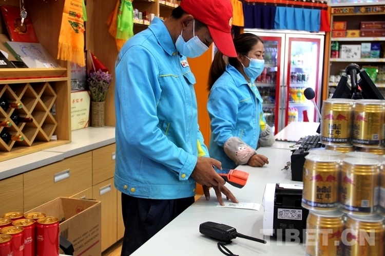 圖為魯朗加油站工作人員在便利店內(nèi)收費(fèi) 攝影:德吉卓嘎