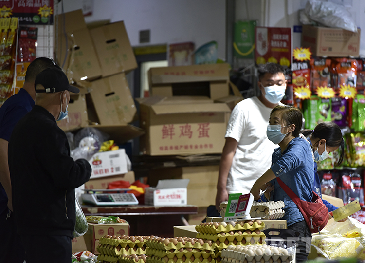 圖為8月9日,市民在拉薩柳梧農(nóng)貿(mào)市場購買雞蛋 攝影:王媛媛