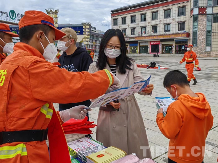 圖為消防員為過往群眾講解防滅火常識