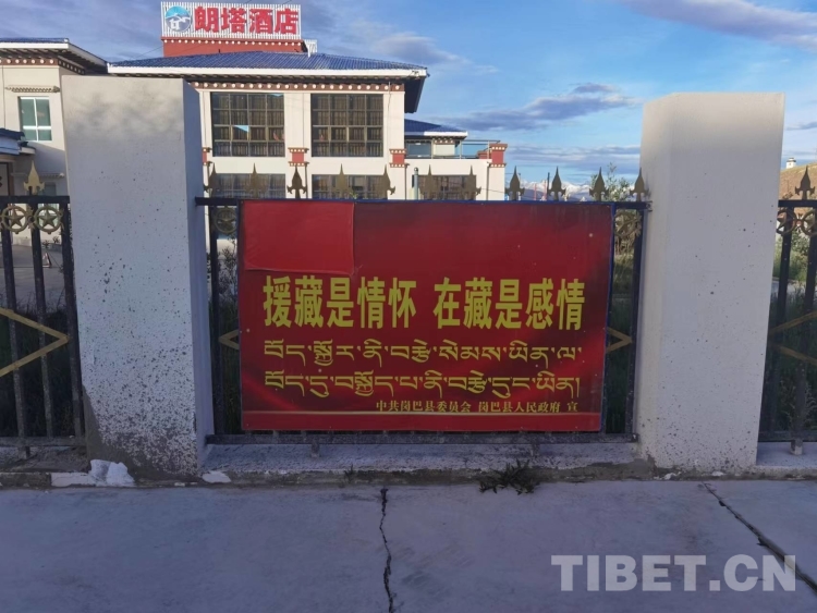 圖為崗巴縣城“援藏是情懷,在藏是感情”標(biāo)語(yǔ) (2022年7月拍攝)