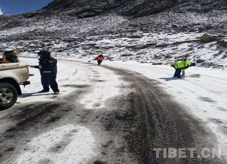 圖為西藏自治區(qū)山南市公安干警雪后在道路上鏟雪,便利群眾出行 攝影:拉加當(dāng)周