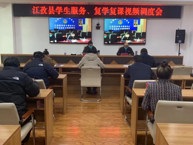 圖為日喀則市江孜縣復(fù)學(xué)復(fù)課視頻調(diào)度會(huì)現(xiàn)場(chǎng)