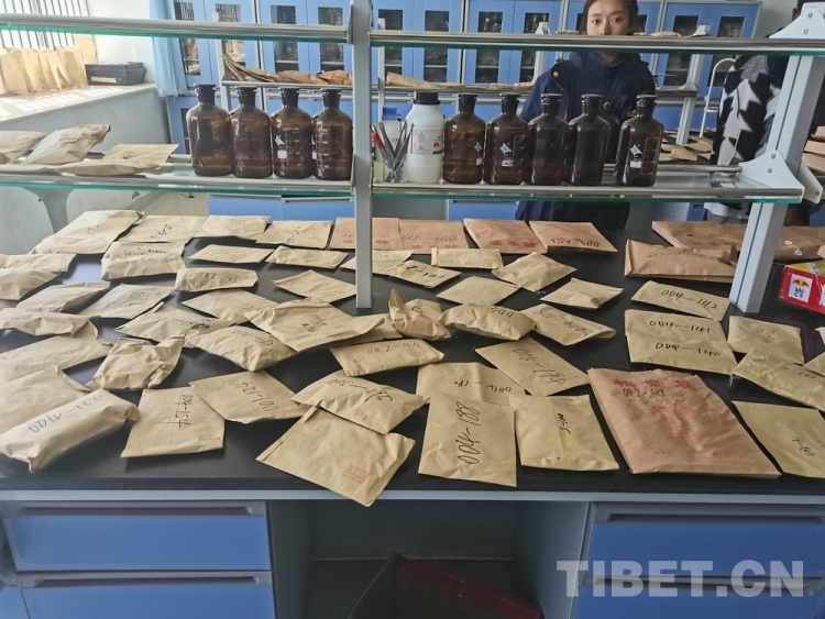 圖為西藏自治區(qū)農(nóng)牧科學(xué)院草業(yè)科學(xué)研究所科技人員將采集到的牧草種質(zhì)資源在實(shí)驗室內(nèi)預(yù)處理