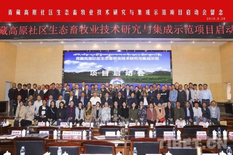 圖為2018年8月“青藏高原社區(qū)生態(tài)畜牧業(yè)技術(shù)研究與集成示范”項目啟動會的會議合影。該項目是西藏科研團(tuán)隊承擔(dān)的科技部重點(diǎn)研發(fā)項目