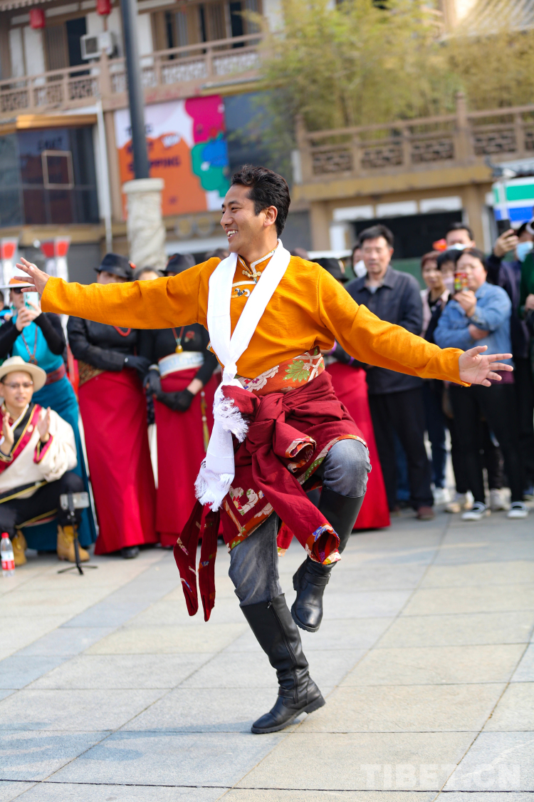 圖為大唐西市活動現場 多杰尼瑪正在領舞 攝影:呂靜