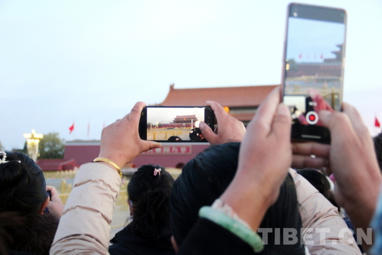 圖為“2023年西藏基層婦聯(lián)干部赴京學習參觀團”成員們紛紛用手機記錄下國旗護衛(wèi)隊行進的英姿 攝影:陳浩力
