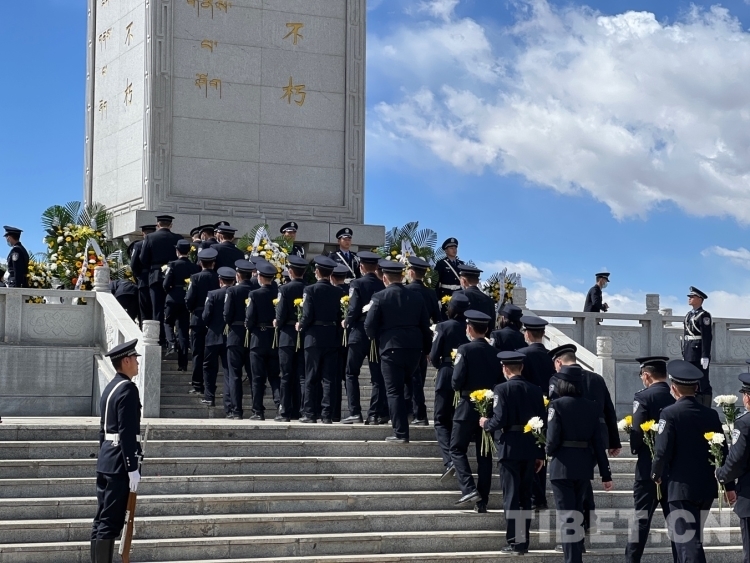 圖為軍警代表向革命先烈敬獻(xiàn)鮮花 攝影:德吉卓瑪