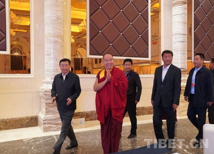 圖為班禪和出席活動的領導步入會場 攝影:王淑