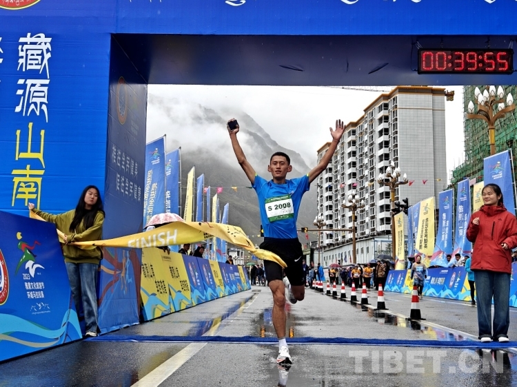 經(jīng)過激烈角逐,格桑旺堆以39分54秒的成績獲得競速跑11公里男子組第一名;邊措以58分21秒的成績獲得競速跑11公里女子組第一名。
