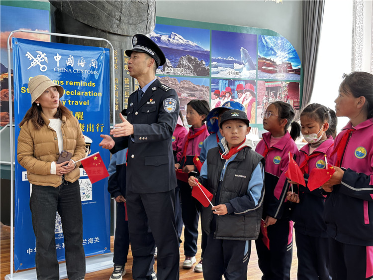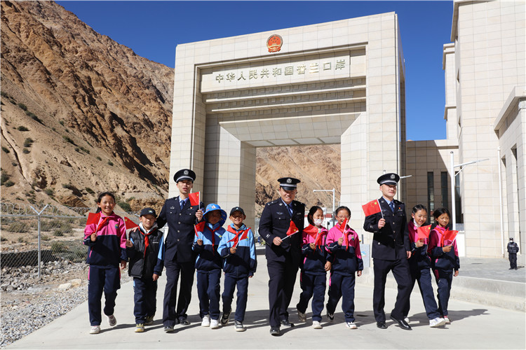 圖為參加活動(dòng)的民警與學(xué)生在中尼(中國(guó)與尼泊爾)9號(hào)界樁,開展“傳承紅色基因 弘揚(yáng)烈士精神”主題宣傳教育活動(dòng)